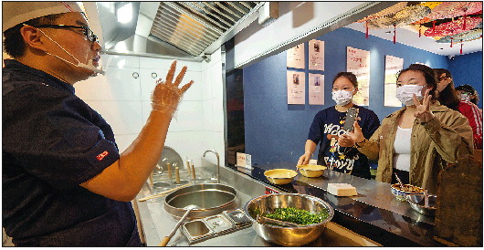“我们是日照职业技术学院的学生,刚才吃完这个清汤面,仿佛吃到了家里妈妈做的面,于是我们就想为‘无声面馆’拍摄一个小短片,向更多人介绍这里,一起来支持这几位哥哥、姐姐!”学生王婧伊、陈超边吃边拍摄着视频。