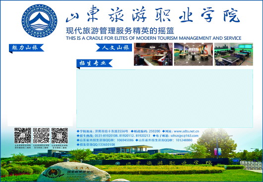 山东旅游职业学院的前身是山东省旅游学校,1988年筹建,1991年正式招生。2004年7月,经省政府批准、教育部备案,改建为专科层次的公办全日制普通高等学校。学校是山东省名校建设工程首批技能型特色名校、山东省优质高职院校建设工程立项单位、全国职业教育先进单位、全国职业技术学校职业指导工作先进学校、全国国防教育特色学校、全国旅游职业教育校企合作示范基地。学校师资力量雄厚,现有教职工400余名,拥有高素质的“双师型”教师队伍。