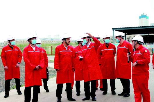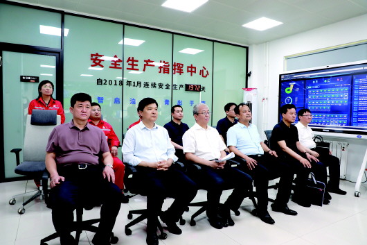 与会人员在智能运营大厅听取智能油田建设汇报。
