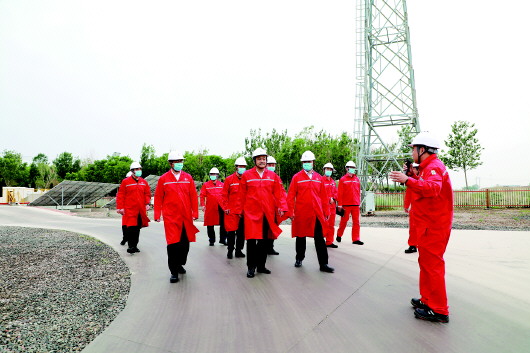 活动中,与会人员首先来到青南采油管理区莱87井场,管理区党支部副书记、副经理赵兴国介绍智能化条件下生产组织运行情况、井场光伏、燃气发电机、低氮燃烧器应用等践行安全绿色发展方面主要措施成效,并以青南采油管理区为例,介绍胜利油田在打造标准化示范井场的工作情况。2022年,青南采油管理区被推荐为中石化信息化采油管理区标准化建设示范区,标志着智能化数字化建设再添新成效。