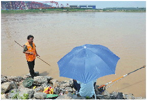 巡河发现有青年在钓鱼,上前提醒注意安全。