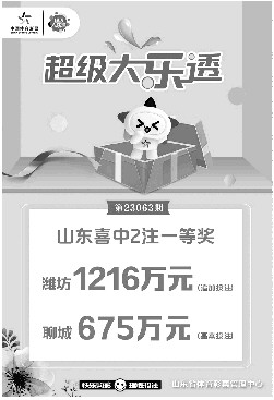 当期全国共开出6注一等奖,其中2注为1216万余元(含540万余元追加奖金)追加投注一等奖,花落山东潍坊和黑龙江绥化;4注为675万余元基本投注一等奖,分落山东聊城、北京朝阳、北京西城、黑龙江佳木斯。