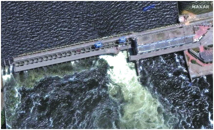 ◥卡霍夫卡水电站大坝现状。 卫星图像