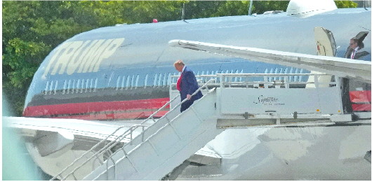 6月12日,美国前总统特朗普在迈阿密国际机场走下飞机。 新华/美联
