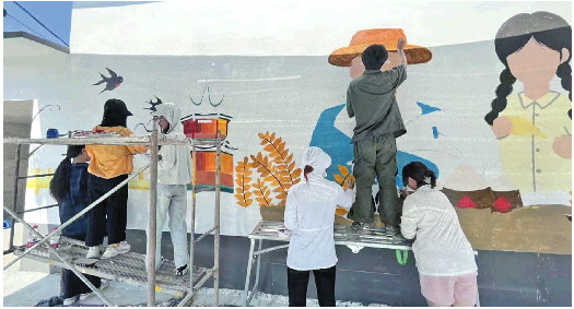 近日,张夏街道联合济南黎慕应急救援队队员山东艺术学院美术学院志愿者到张夏街道绿豆囤村开展美丽乡村主题墙绘活动。一墙一文化,一墙一风景。活动现场,志愿者们冒着酷暑,热情高涨,分工协作。他们发挥自己艺术特长,有的用笔勾画轮廓,有的配颜料上色,通过大家的共同努力,在墙上绘出了色彩鲜艳的图案,原本的白墙“焕然一新”,成为了一道靓丽的风景线。