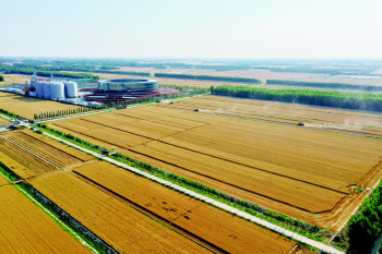 6月15日,在德州市齐河县30万亩粮食绿色高质高效“吨半粮”示范区里,金黄色的小麦迎来收获季。麦田里,小麦联合收割机开足马力,正在加紧作业。