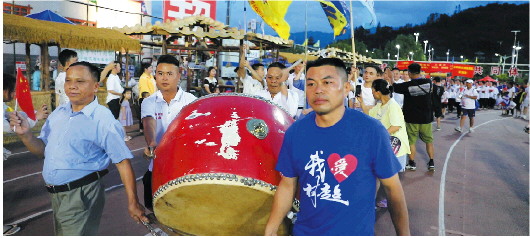 口寨村自发组织了近千人的啦啦队,赛前,啦啦队进场为球队助威。