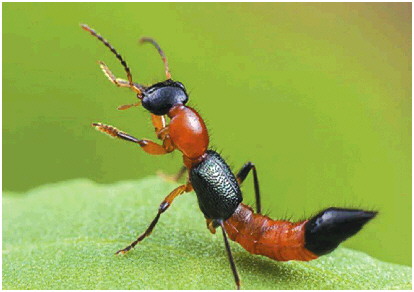 隐翅虫是一种带有强酸性毒液、黄黑相间的小虫子。