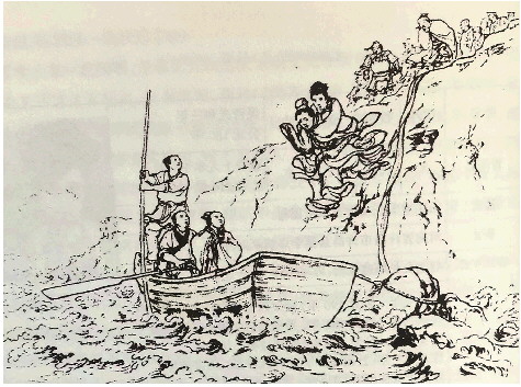 哥哥伏德背伏皇后过黄河。 (《三国演义》连环画)