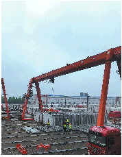 一块块7吨多重的轨道板从这里“上车”去往高铁轨道铺设的地方。
