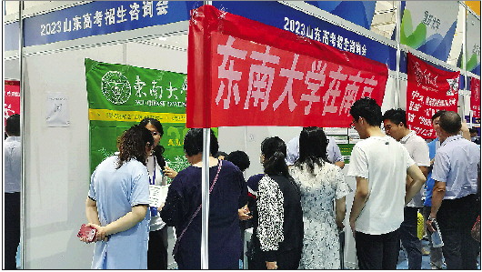 “她给东南大学校友总会的第一个任务就是,‘要让90%的国人知道东南大学在南京。”符影杰说,因此才有了齐鲁晚报2023高招咨询会现场“东南大学在南京”的横幅,“这是我们东南大学济南校友做的,专程带到咨询会现场。”