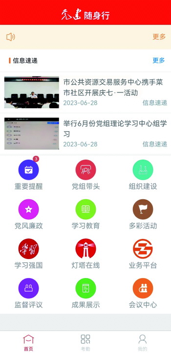 “党建随身行APP”立足于加强基层党组织建设和党员队伍教育管理服务,开发了重要信息提醒、党组带头、党风廉政、学习教育、多彩活动、监督评议、成果展示等功能模块。如今,中心的基层党建日常业务工作都可以在这一个平台实现,形成线上线下、党员和党组织紧密联动的党建工作信息化体系架构。