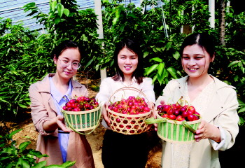 党员志愿者在推广销售党支部领办合作社种植的红樱桃。