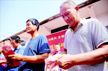村党组织领办的合作社召开分红大会。