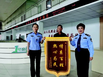 东昌府交警一直坚持以人民为中心的发展思想,推进落实交警系统改进执法“六项措施”,做到轻微违法不予处罚、一般违法首次警告、常见违法先行提醒,努力实现“三个效果”的相统一。牢固树立“交警在路上”理念,巧用“加减乘除”运算法,以优化营商环境为契机,营造浓厚的亲商、爱商、重商、尊商的氛围,为群众、企业办实事解难题,推动公安交管“放管服”改革走深走实。6月6日上午,浙江永康市的应先生将印有“情系百姓 热心为民”的感谢锦旗送到东昌府大队车管所工作人员手中。感谢大队工作人员服务热情周到,细致入微,认真负责,主动排忧解难,切实为老百姓办了实事。
