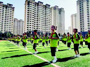 聊城高新区天津路小学非常重视体育特色学校的创建,努力搭建符合学生性格特点、兴趣爱好的大体育平台,用体育工作为“双减”赋能,推动“双减”政策见实效,学生体质健康明显提升。制定并出台了《天津路小学阳光体育大课间方案》,通过大课间活动,体育组老师精心编排设计了具有学校特色的韵律操《健康动起来》,将基本体操、舞蹈动作有机融合,动作舒展优美、简单易学,确保学生每天一小时体育锻炼时间。同时还准备了室内和室外两套活动内容,根据天气和环境要求选择适宜的活动内容开展阳光体育大课间活动。