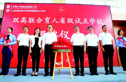 “2019年,学校被山东省教育厅确定为普通高中改革发展重点任务“双高联合育人”省级试点学校。学校以优质教育资源共建共享为基础,以特色课程建设为载体,开创性地提出‘双高’联合育人新模式,大力开展与名牌大学、知名中学联合育人的改革与实践,深化人才培养模式改革,打造学术型高中。”党委书记、校长郑玉香表示,济南大学城实验高级中学首创了打通大学与高中的人才培养体系,通过“双高”课程建设联合育人,既为高中教育服务,更为高校人才培养服务,创建了高中高校“双基地”建设长效机制和高校导师引领的“双高”课程实施机制,将众多知名高校的专家资源、学术资源和硬件资源源源不断引流到学生身上。