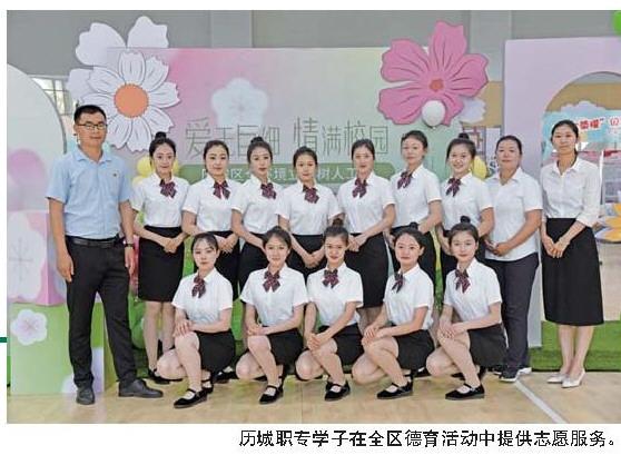 历城职专学子在全区德育活动中提供志愿服务。