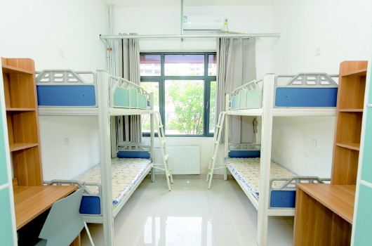 宿舍采用四人间的布局方式,空调暖气齐备,设有独立洗漱台与卫生间、淋浴间;配备独立的学习桌和衣橱。宿舍楼内直饮水、洗衣房、24小时热水供应系统等生活设施一应俱全,给学生家的感觉。学生餐厅共四层,环境整洁高雅,可同时容纳3000人就餐,每日三餐供应,中西餐菜色丰富多样,食品安全卫生,班主任一日三餐陪餐。