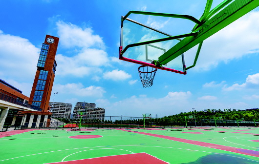 为学生综合素质全面发展,学校配备有400米标准跑道和足球场、8个室外篮球场、4个排球场(兼羽毛球场);还建设了室内体育馆,馆内设有舞蹈室、跆拳道场地、游泳池与击剑馆等,满足学生日常上课和锻炼等多样化需求。