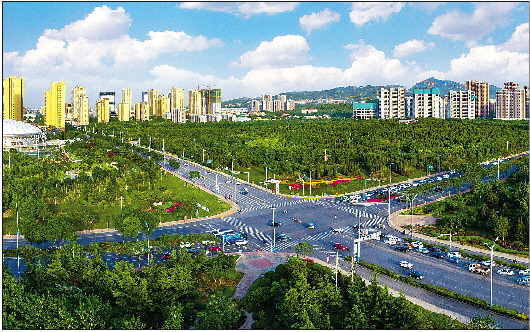章丘区坚持绿色低碳发展,目前建成区绿化覆盖率已达到44.9%。
