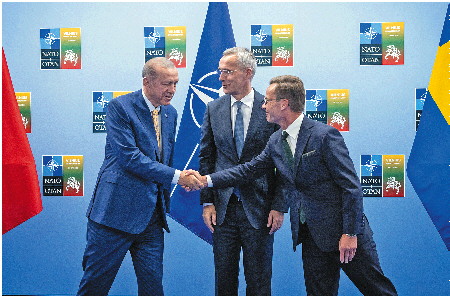 据当地媒体报道,埃尔多安10日启程前往立陶宛首都维尔纽斯参加北约峰会。他在行前发表讲话说,先给土耳其加入欧盟开放通道,然后土耳其也将为瑞典加入北约开放通道,就像此前土耳其支持芬兰加入北约一样。这是他首次将瑞典加入北约与土耳其加入欧盟“挂钩”。