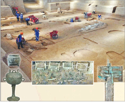 去年开始发掘的淄博市临淄区齐都镇南马坊战国大墓,被称为年内全省五大考古新发现,总面积超1400平方米,墓内装饰精美,像一座地下宫殿。考古人员根据其规模、形制、出土文物等信息,将墓主身份锁定为上卿一级的贵族。这里同时发现两座“山东最大”车马坑。 记者 乔显佳 岳致呈 摄影报道