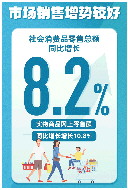 今年上半年,社会消费品零售总额227588亿元,同比增长8.2%,比一季度加快2.4个百分点。餐饮收入、限额以上单位金银珠宝类和体育娱乐用品类零售额,分别增长21.4%、17.5%、10.5%,均实现两位数的增长。
