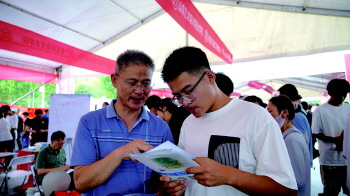 现场也有不少考生是自己来的。在一片树荫下,李波席地而坐,专注着手中的资料。“我偏向工程类、机械类院校,因为相对好就业一些。今天我着重问了济南铁路学校、山东交通职业学院和山东电子职业技术学院等几所院校,但志愿具体该如何填报,还要回去考虑考虑。”