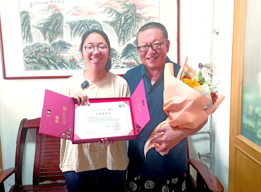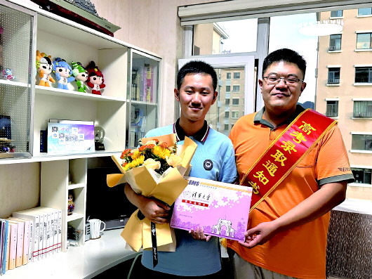 “送完后,我们一起合影留念,很开心也很激动,这个孩子考得很好,强基计划、本博连读,之前不太了解,我还特意去搜了一下。”于涛笑着说,他2016年入职,今年已是第六年参与送高考录取通知书。除了第一封通知书,今年清华来烟的首封录取通知书也是于涛投递的。