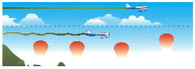 根据反射回来的回波,雷达显示器会将前方情况用不同颜色显示:绿色表示轻微颠簸,黄色代表稍强但可控的中度颠簸,红色表示飞机可能暂时失控,而洋红色(或称品红色)表示飞机几乎完全失控。
