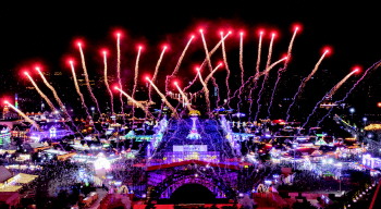 据悉,“炫彩啤酒城”大型梦幻建筑实体光影秀以青西金啤精酿体验馆外墙为幕布,正面主投影的投影面积达到500平方米,楼体四周设有激光投影,总投影面积接近2000平方米,以超越8K分辨率的超宽幅投影技术展现丰富多彩的细节。同时,光影秀以国际最时尚的3D Mapping光影技术结合激光、灯光及音效应用,为现场观众带来一场梦幻视听盛宴。不仅如此,楼体顶部还装饰着80盏高亮度多彩光束灯,为整个场景增添了夺目的高空色彩。