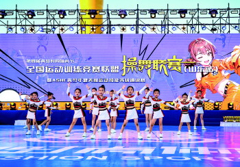 华灯初上,音乐渐起,身着统一服装的啦啦操队姑娘们轻踩节拍,跃动于音韵之间。她们时而轻歌曼舞,时而劲歌热舞……7月17日下午,第四届青岛时尚体育节全国运动训练竞赛联盟操舞联赛(山东站)暨ASHE青少年健美操运动技能等级通级赛在金沙滩啤酒城西啤酒文化广场揭幕。场上,姑娘们带着灿烂的笑容,用舞姿诠释满腔热情,展现蓬勃朝气。