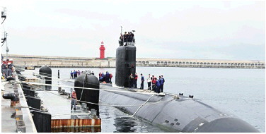 ◥7月24日,美国核动力潜艇“安纳波利斯”号停靠济州海军基地。