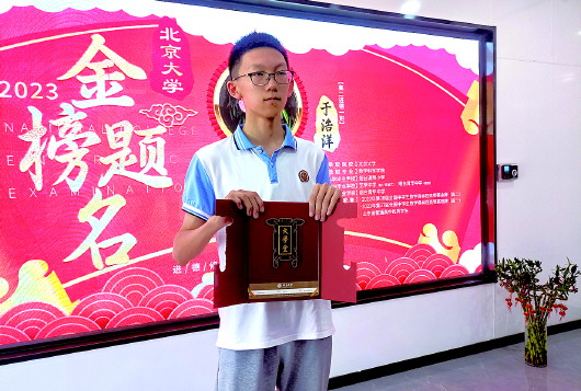 据了解,2023年1月8日,中国数学会公布2022年全国中学生数学奥林匹克竞赛(决赛)获奖名单,烟台青华中学高二学生于浩洋获得金牌,成为烟台唯一获得金牌的学生。随后,于浩洋经过北京大学数学科学学院英才班一个周的笔试、面试等环节,通过了北大数学院英才班考核,获得一本约!这意味着,还在读高二的于浩洋只要在2023年的高考中通过山东省的特殊类型招生控制线就可以顺利被北京大学提前录取。因此,参加完竞赛和北大的笔试面试后,仅仅经过4个月的文化课学习,于浩洋便参加了2023年高考。最终,于浩洋不负众望,圆梦北大。“今年高考我获得了638分的成绩,被北京大学数学科学院英才班录取。”于浩洋说。