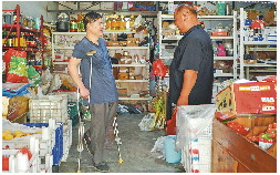 李瑞德(左)和邻居聊天。