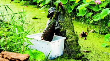 七八月份的太白湖新区石桥镇新闸村村民们,时常因小龙虾忙碌在清晨和傍晚。新闸村南邻泗河及南四湖,河网水系纵横,坑塘众多,水产养殖历史悠久。去年以来,新闸村依托丰富的水田资源,将泗河入湖口600亩土地种上了太空莲,并分地块承包给个人。今年,新闸村公开土地租赁权,引进种植养殖业能人,发展“荷花+”套养模式,不但为村里增加了一道荷花美景,更为村民增收创造了一条新路子。