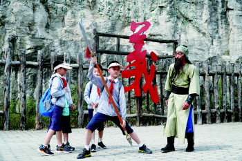 “你们是哪里人?为何在此哭泣?”“小女是东京人氏……有个叫镇关西的郑大官人强行把我娶做他的小妾。”在水泊梁山风景区,来自聊城的小学生孟子昊正跟同学们进行剧本游戏扮演,他们身穿古装、念念有词,再现着《水浒传》中的经典故事。