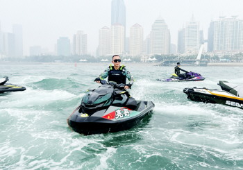 12日上午,青岛市摩托艇运动协会的骑手们驾驶摩托艇从奥帆中心出发,在2023第十五届青岛国际帆船周·青岛国际海洋节开幕之后的第一天早晨进行海上巡游,为青岛市民们上演了一场海上骑行大戏,展现了青岛水上运动的时尚气息。