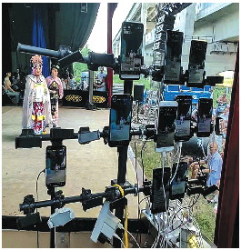 戏台如今不一样了,旁边架满手机现场直播。