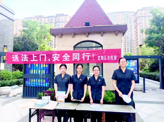 为有效预防、减少并化解道路交通事故及纠纷,近日,定陶区人民法院民事一庭全体干警,来到滨河街道董河社区镜湖小区开展了“送法上门,安全同行”志愿服务活动。