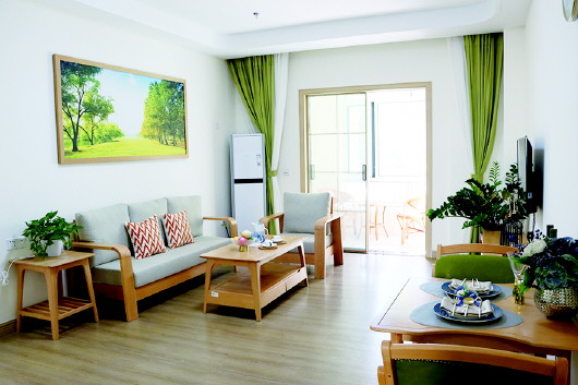 在长寿村,适老化的设计理念渗透到每一处细节。老人房间的空间设计和家具配置都充分体现了无障碍和适老化的原则,房间床头、客厅、卫生间均配备紧急呼叫器,配合24小时值班服务,再加上工作人员无微不至的贴心服务,老人们都把这里当成了自己的家。“来到这里就跟家一样,在这里住我很踏实,也很开心。”入住老人李大爷如是说。