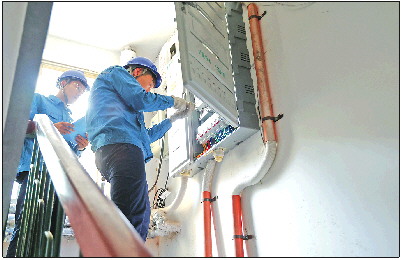 济南供电公司员工正在老旧小区供电户表改造现场安装新的智能电表。 何延海 摄