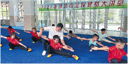 这是潍坊市全民健身大讲堂系列活动中的一节课,除了武术这样的传统项目外,健身燃脂操、健身气功、广场舞等深受群众喜爱的运动,每周都在开展。