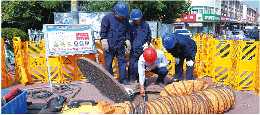 东泰热力维护人员在热力井内进行焊接工作。