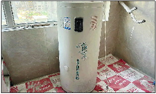 8月21日,帮办记者来到甲第壹号小区,见到了业主反映的热水器储水箱。开发商给业主提供的是山东某品牌太阳能热水器,储水箱的额定容量为100升,如庞然大物般悬挂在阳台的墙上十分惹眼。