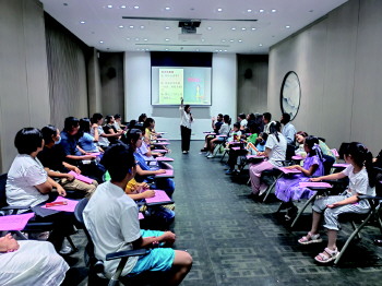 本报济宁8月24日讯(记者 汪泷 通讯员 郭帅) 8月19日,由孔子研究院传承发展部与济宁市图书馆联合主办的“相约经典·三周年”公益读书会线下活动举办。孔子研究院助理研究员杨富荣以《“典亮”,点读,点赞》为主题进行理论讲解,组织体验活动,并颁发“优秀朗读者”荣誉证书,40多名家长及子女参加活动。