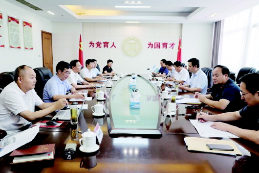8月17日上午,枣庄市教育局党组书记、局长王光明,市教育局党组成员、总督学孙斌一行到枣庄学院座谈,沟通了解“鲁南数字健康产业创新引领区”(暂定名)项目建设相关情况。
