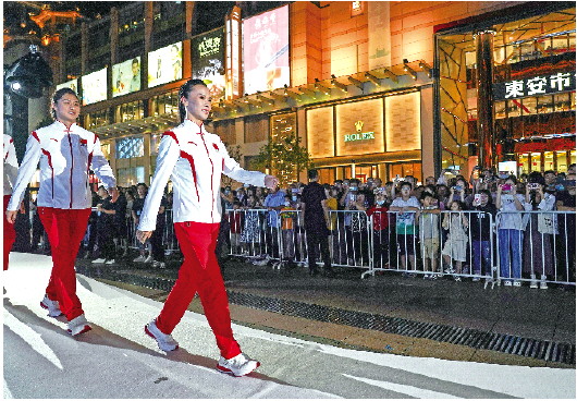 图为8月24日,运动员代表展示杭州亚运会中国体育代表团领奖服装。 新华社发