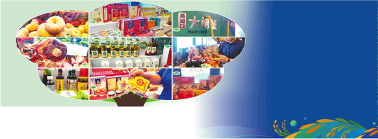 ▲“齐鲁农超”农产品体验区展出的各类特色产品。